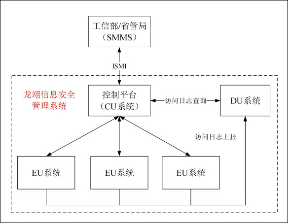 龙翊信息安全管理系统 遵循工信部相关标准规范,实现信息安全管理系统(ISMS)企业侧全部功能。 系统主要包括: CU(控制平 台)、EU(执行系统)和DU(日志系统) 等子系统。CU子系统与工信部或省管局SMMS系统对接实现基础数据的上报, CU系统接收信息 安全指令后下发EU执行,并将EU执行的结果上报到SMMS;EU实现活跃资源的监测、异常IP监测、违法违规网站监测、 违法信息的监测发现和过滤封堵处置(TCP/UDP)、黑白名单、访问日志的合成与上报等功能;DU负责海量访问日志的存储,并提供查询检索接口。