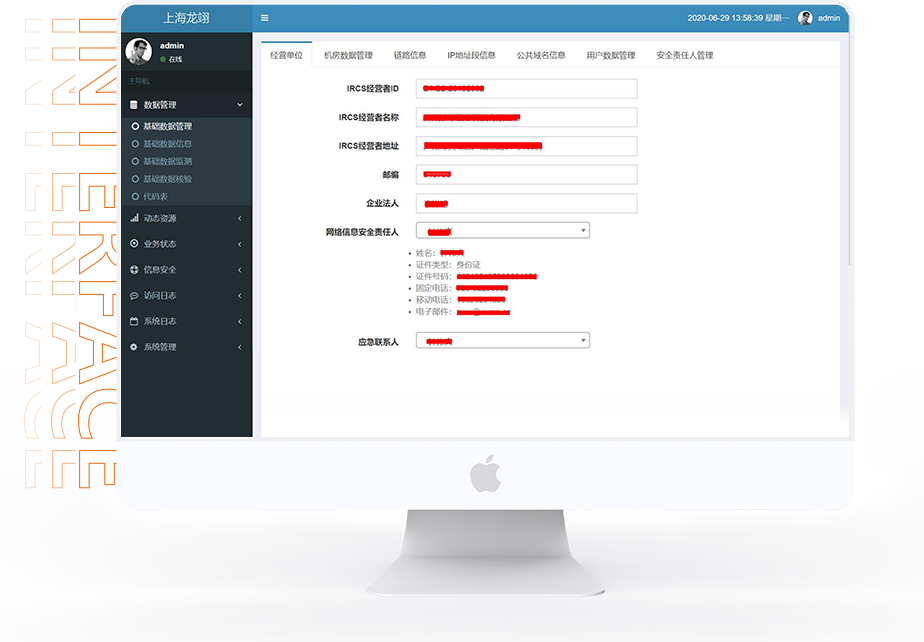 龙翊信息安全管理系统基于工信部的标准规范开发,符合标准,满足IDC信息安全管理系统、IRCS信息安全管理系 统,CDN信息安全管理系统的对接要求;